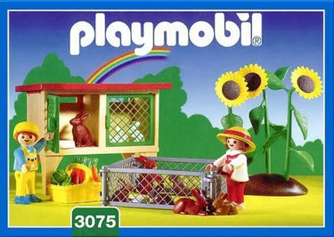De Playmobil Konijnenhok (3075) is een charmante set uit de Playmobil Country-serie, perfect voor jonge dierenliefhebbers en om een boerderijcollectie compleet te maken. Uitgebracht in 1999, bevat de set een ruim konijnenhok met buitenren, negen schattige konijnen, zonnebloemen en twee Playmobil-figuren om voor de dieren te zorgen. Deze vintage set biedt veel speelmogelijkheden en is gewild onder verzamelaars vanwege de gedetailleerde accessoires en de nostalgische uitstraling.