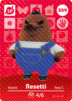 Resetti #309 - Series 4 Amiibo-kaart maakt gebruik van NFC-technologie om unieke interacties mogelijk te maken met compatibele Nintendo-spellen. De kaarten bieden extra spelmogelijkheden, zoals het ontgrendelen van personages, voorwerpen of speciale gebeurtenissen – en voegen zo extra waarde toe aan je game-ervaring.
