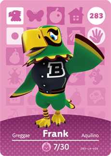 Frank #283 - Series 3 Amiibo-kaart maakt gebruik van NFC-technologie om unieke interacties mogelijk te maken met compatibele Nintendo-spellen. De kaarten bieden extra spelmogelijkheden, zoals het ontgrendelen van personages, voorwerpen of speciale gebeurtenissen – en voegen zo extra waarde toe aan je game-ervaring.