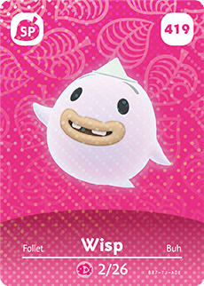 Wisp #419 - Series 5 Amiibo-kaart maakt gebruik van NFC-technologie om unieke interacties mogelijk te maken met compatibele Nintendo-spellen. De kaarten bieden extra spelmogelijkheden, zoals het ontgrendelen van personages, voorwerpen of speciale gebeurtenissen – en voegen zo extra waarde toe aan je game-ervaring.