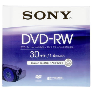 De Sony DVD‑RW 8 cm Single Disc (DMW30AJ) is een herschrijfbare mini‑DVD met een capaciteit van 1,4 GB, ofwel ca. 30 minuten opname in standaard (SP) modus. Deze disc is perfect voor gebruik in 8 cm DVD‑camera’s of mini‑DVD spelers. Hij maakt gebruik van AccuCORE technologie voor verbeterde betrouwbaarheid, bestand tegen krassen, vuil en statische elektriciteit. De schrijf‑snelheid is maximaal 2×, en het is mogelijk om de disc meerdere keren opnieuw te beschrijven zodra bestaande opnamen gewist zijn.