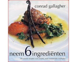 Het kookboek 'Neem 6 Ingrediënten' van Conrad Gallagher biedt meer dan 100 slimme recepten met maximaal zes ingrediënten. Het boek is geschikt voor ervaren thuiskoks die snel en smaakvol willen koken zonder ingewikkelde boodschappenlijstjes. De recepten zijn geordend op menuvolgorde, wat het samenstellen van een maaltijd vergemakkelijkt. Met een hardcoveruitvoering en 160 pagina's biedt het boek zowel culinaire inspiratie als praktische tips.