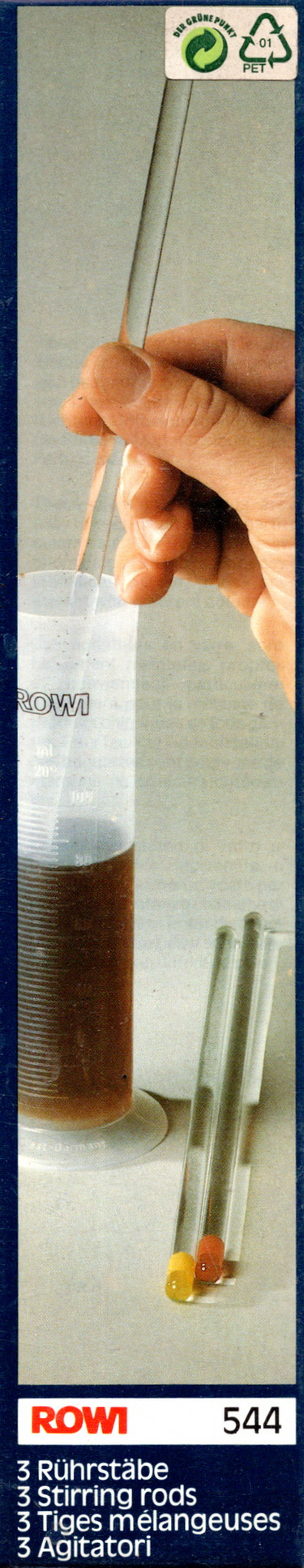De Rowi 544 Roerstaafjes Set bevat drie transparante kunststof roerstaafjes, ideaal voor gebruik in de fotochemie, laboratoriumtoepassingen of hobbyprojecten waarbij vloeistoffen gelijkmatig gemengd moeten worden. De staafjes zijn vervaardigd uit duurzaam PET-kunststof, herbruikbaar en voorzien van een gekleurde bol aan het uiteinde voor goede grip en zichtbaarheid. Dankzij hun smalle formaat zijn ze bijzonder geschikt voor het mengen in maatbekers of cilindervormige vaten. Deze set is een handig hulpmiddel voor nauwkeurige en schone mengprocessen.