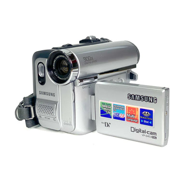 De Samsung VP‑D453 is een MiniDV camcorder met 10× optische zoom en 900× digitale zoom, ontworpen voor gebruikers die op zoek zijn naar een compacte videocamera voor standaarddefinitie-opnames op tape. Het apparaat beschikt over een 2.7-inch kantelbaar LCD-scherm en een optische zoeker, waardoor je flexibel kunt filmen vanuit verschillende hoeken. Met meerdere scène-instellingen zoals nachtmodus, sport en portret en diverse visuele effecten zoals sepia en zwart-wit, kun je creatieve opnames maken direct tijdens het filmen. Deze camera is vooral geschikt voor liefhebbers van vintage apparatuur of voor het digitaliseren van bestaande MiniDV-opnames, en biedt een betrouwbare oplossing voor basisgebruik bij voldoende lichtomstandigheden.