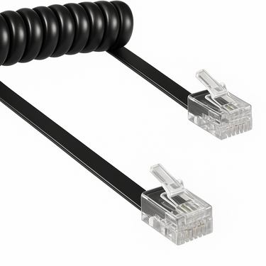 Deze telefoonhoorn kabel RJ10 is een gekrulde 4‑aderige spiraalkabel met RJ10 (4P4C) man‑naar‑man stekkers, bedoeld om eenvoudig een telefoonhoorn aan een basisstation te koppelen. Met een uitgerekte lengte van circa 2 meter biedt hij voldoende bewegingsvrijheid, terwijl hij compact blijft wanneer niet uitgerekt. De kabel heeft een CCA‑kern en een zwarte PVC‑mantel voor gebruik met bedrade kantoor- en huistelefoons, en vervangt moeiteloos een versleten of te korte originele kabel.