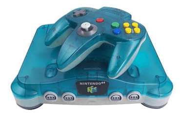De Nintendo 64 Ice Blue Clear is een transparant blauwe editie met witte clear onderkant van de klassieke N64-console inclusief bijbehorende controller, ideaal voor retro gaming-liefhebbers en verzamelaars.