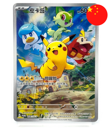 De Pokémon TCG Simplified Chinese Pikachu and Friends 004/SV-P kaart is een speciale promokaart uitgebracht in het vereenvoudigd Chinees. Deze kaart toont Pikachu samen met diverse populaire Pokémon-vrienden in een vrolijke illustratie en draagt de unieke promotiecode 004/SV-P. Gloednieuw ongeopend in foil.