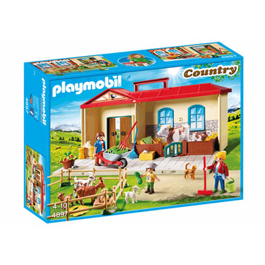 De PLAYMOBIL Meeneem Boerderij (4897) is een complete boerderijspeelset in een handige draagkoffer, ideaal om snel op te ruimen en mee te nemen. Je klapt de boerderij open en speelt direct met 3 speelfiguren en verschillende dieren, waaronder een koe met kalf, geitjes, een kat en een muis, aangevuld met boerderijaccessoires voor verzorging in de stal en op de weide. Alles past na het spelen weer netjes in de koffer, waardoor deze set heel geschikt is voor thuis, logeerpartijen en onderweg. Met een formaat van ongeveer 39 x 24 x 20 cm is het een overzichtelijke, complete boerderijwereld voor kinderen vanaf 4 jaar en ook leuk voor liefhebbers die graag een compacte PLAYMOBIL Country opstelling bouwen.