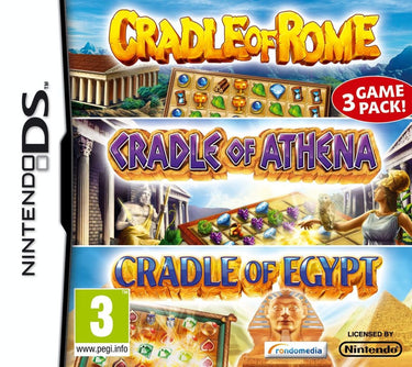 3 in 1: Cradle of Rome + Cradle of Athena + Cradle of Egypt voor de Nintendo DS bundelt drie verslavende match-3 puzzelgames in één cartridge, elk geïnspireerd door een machtige beschaving uit de oudheid. In Cradle of Rome bouw je het Romeinse rijk op door middel van slimme combinaties en strategisch gebruik van middelen. Cradle of Athena neemt je mee naar het klassieke Griekenland, waar je tempels en monumenten herbouwt met behulp van mythische krachten. In Cradle of Egypt reis je door 5 historische tijdperken en ontwikkel je je nederzetting tot een machtige Egyptische metropool. De kleurrijke graphics, ontspannende muziek en oplopende moeilijkheidsgraad zorgen voor uren speelplezier. Dankzij de draagbaarheid van de DS is dit een ideale verzameling voor puzzelfans onderweg. Ontdek de charme van oude beschavingen terwijl je logisch nadenkt en strategisch puzzelt. Een perfecte keuze voor liefhebbers van casual games met een historische twist.