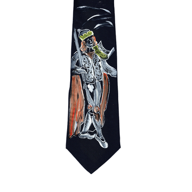 De Stropdas Haarlem 750 Jaar – Zwart is een bijzondere herdenkingsdas ontworpen ter gelegenheid van het 750-jarig bestaan van de stad Haarlem in 1995. De das toont een artistieke illustratie van een historisch figuur met speer en vaandel, gedrukt op een diepzwarte achtergrond die het ontwerp krachtig laat uitkomen. Deze uitvoering is gemaakt van stevig polyester en uitgevoerd in een klassieke snit, geschikt voor formele gelegenheden of als uniek verzamelitem. Een stijlvol accessoire met culturele waarde, perfect voor liefhebbers van Haarlemse geschiedenis of als geschenk met historische betekenis.
