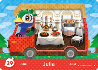 De Julia #29 - New Leaf Welcome series Amiibo kaart hoef je alleen maar tegen het NFC-aanraakpunt van de Nintendo Switch of Wii U te houden om deze te activeren – er zijn geen extra apparaten nodig. (Voor gebruik op de Nintendo 3DS is een aparte NFC-lezer vereist.)