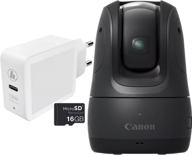 De Canon PowerShot PX Essentials Kit is een compacte en slimme camera die automatisch 11,7 megapixel foto's en Full HD-video's tot 60 fps vastlegt met behulp van gezichtsherkenning en een pan-tilt-zoomlens (19–57 mm). Dankzij de spraakbesturing en de Connect-app voor Mini PTZ Cam kun je eenvoudig opnames maken en beheren via je smartphone. De camera beschikt over Wi-Fi en Bluetooth voor draadloze connectiviteit en wordt opgeladen via USB-C. Deze kit bevat een 16GB microSD-kaart en een USB-C-oplader met wereldwijde stekkeradapters, waardoor het een ideale keuze is voor het automatisch vastleggen van spontane momenten tijdens gezinsactiviteiten, evenementen of als draadloze webcam voor Windows 10.