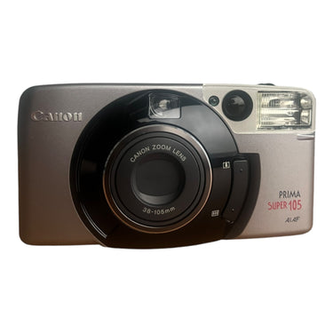 De Canon Prima Super 105 Ai AF 35mm is een point-and-shoot filmcamera die populair is vanwege zijn gebruiksgemak en veelzijdige functies. De camera beschikt over een 38-105mm zoomlens, waardoor je zowel groothoek- als telefoto-opnamen kunt maken, ideaal voor verschillende fotografische situaties zoals portretten en landschappen. Dankzij de automatische scherpstelling (AF) en belichting is het eenvoudig om scherpe en goed belichte foto's te maken zonder veel technische kennis.