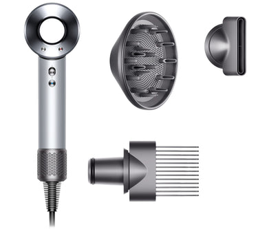 De Dyson HD04 Supersonic föhn in zilver biedt een innovatieve en krachtige föhnervaring, speciaal ontworpen voor optimaal haarverzorging. Met de meegeleverde opzetstukken – de diffuser, stylingconcentrator, gladmakende nozzle en kam met brede tanden – is deze föhn geschikt voor elk haartype en elke stylingbehoefte. Dankzij de intelligente warmtecontrole voorkomt de föhn oververhitting, waardoor uw haar gezond en glanzend blijft. De krachtige digitale motor zorgt voor snelle droging, terwijl het ergonomische ontwerp een comfortabele gebruikservaring biedt. Perfect voor professioneel stylen met precisie en gemak.