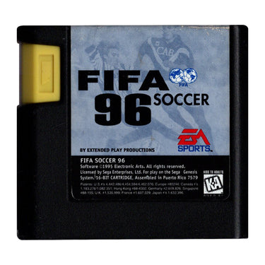 FIFA 96 Soccer voor de Sega Mega Drive is een klassieke voetbalgame en het eerste deel in de FIFA-serie met officiële spelersnamen dankzij de Virtual Stadium-engine. De game bevat meer dan 3.500 spelers en 200 teams uit competities wereldwijd, inclusief realistische teamopstellingen en statistieken. Met verbeterde graphics, vloeiende animaties en verschillende speelmodi, zoals toernooien en vriendschappelijke wedstrijden, bood FIFA 96 een authentieke voetbalervaring. Het blijft een nostalgische titel voor fans van retro-voetbalgames.