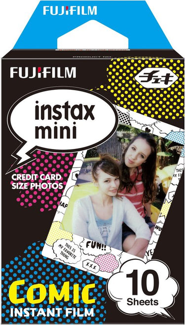 De Fujifilm Instax Mini Film - Comic - 10 stuks is speciaal ontworpen voor gebruik met alle Instax Mini-camera's en -printers. Deze film produceert direct foto's van creditcardformaat (5,4 x 8,6 cm), ideaal om mee te nemen in uw portemonnee of om te delen met vrienden. Met een ISO-waarde van 800 levert de film levendige kleuren en natuurlijke huidtinten, zelfs bij verschillende lichtomstandigheden. Elke verpakking bevat 10 vellen film, elk met een unieke comic-stijl rand, compleet met klassieke tekstballonnen en stripachtige elementen, wat een creatieve en speelse touch toevoegt aan uw foto's. De film is eenvoudig te laden dankzij de gemakkelijke cartridge, en de foto's ontwikkelen zich binnen enkele minuten na het maken van de opname. Let op: deze film is compatibel met alle Instax Mini-camera's en -printers, maar niet met Instax Square- of Wide-modellen.