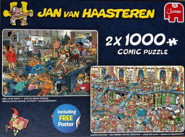 De Fabriek van de Kerstman + Oud en Nieuw Feestje - 2x1000 Stukjes - Puzzel (Zonder Mini kleurboek)