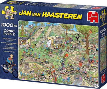 Jan van Haasteren Wereldkampioenschappen Veldrijden Legpuzzel 1000 Stukjes is weer een parel van Jan van Haasteren. Tijdens het Wereldkampioenschappen Veldrijden verloopt niet alles even soepel. Jan van Haasteren Wereldkampioenschappen Veldrijden Legpuzzel 1000 Stukjes stukjes voor de echte Jan van Haasteren fans!