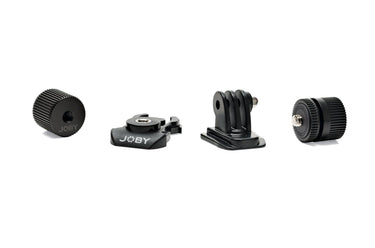 De Joby Action Adapter Kit (JB01345) is een veelzijdige montageset voor actioncamera’s, ontworpen om de compatibiliteit en functionaliteit van je apparatuur uit te breiden. De kit bevat onder andere een GoPro-statiefadapter, een 1/4” quick-release buckle, een 1/4” female-female adapter en een 1/4” male-male adapter, waarmee je eenvoudig verschillende camera’s en accessoires met elkaar verbindt. Ideaal voor het bevestigen van actioncamera’s op statieven, clamps of andere rigs. Dankzij de robuuste constructie van ABS-kunststof, staal en aluminium is deze set licht, duurzaam en geschikt voor intensief gebruik. Perfect voor videomakers en fotografen die werken met GoPro, Sony Action Cam, Contour of andere systemen en maximale flexibiliteit willen bij het monteren van hun apparatuur.