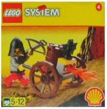 De LEGO Castle Fright Knights Fire-Cart (2538) is een compacte promotieset uit 1998 die is uitgebracht via een Shell-actie en bestaat uit 20 onderdelen met 1 minifiguur. Je bouwt een klein karretje op wielen met een gemonteerd kruisboog/werper-element, passend bij het Fright Knights thema en ideaal om als extra voertuig of bewapening toe te voegen aan een bestaande LEGO Castle opstelling. Door het kleine formaat is dit een leuke aanvulling voor speelscènes, maar vooral ook interessant voor verzamelaars en liefhebbers van klassieke LEGO Castle sets en promotionele uitgaven.
