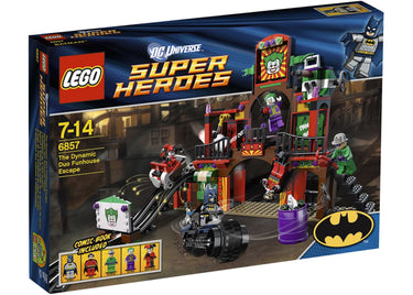 Batman en Robin in plezier en avontuur met de LEGO Batman: The Dynamic Duo Funhouse Escape. Dit product wordt aanbevolen voor kinderen van zeven tot en met veertien jaar, maar volwassen fans, verzamelaars en stripboekenverzamelaars kunnen zich allemaal vermaken met de set. Naast Batman en Robin bevat de set ook de schurken The Joker, The Riddler en Harley Quinn. Enkele andere delen van het prethuis zijn onder meer een kraan, een hamer en een luik. Het funhouse-gedeelte van de set heeft een beweegbare kraan en een vloer die beweegt. De set wordt ook geleverd met een Batcycle voor Batman en Robin waarop ze kunnen strijden.