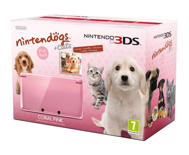 3DS Console - Roze / Coral Pink + Nintendogs + Cats: Golden Retriever (In doos)
