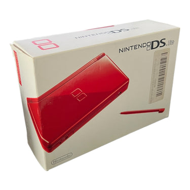 Nieuwe DS Lite in de kleur rood, de oplader heeft een UK stekker.