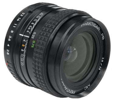 De Pentacon Prakticar 28mm f/2.8 MC is een groothoek prime-lens ontworpen voor Praktica B-bajonetcamera's, geproduceerd in de voormalige DDR tussen 1979 en 1991. Met een brandpuntsafstand van 28 mm en een maximaal diafragma van f/2.8 biedt deze lens uitstekende prestaties voor landschaps-, straat- en architectuurfotografie. De lens heeft een minimale scherpstelafstand van 0,25 meter, een zesbladig diafragma en een multi-coating die zorgt voor verbeterd contrast en verminderde lensflare. Dankzij de stevige metalen constructie en het compacte ontwerp is de lens zowel duurzaam als gemakkelijk hanteerbaar. Hoewel oorspronkelijk bedoeld voor Praktica B-camera's, kan deze lens met de juiste adapter ook worden gebruikt op moderne digitale camera's, waardoor het een aantrekkelijke keuze is voor liefhebbers van klassieke fotografieapparatuur.