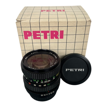 De Petri 28‑50 mm F/3.5‑4.5 MC is een compacte, handmatige zoomlens uit de jaren 70–80, uitgerust met meerlaagse antireflectiecoating (MC) voor verbeterde contrast- en kleurweergave. Met een veelzijdig zoombereik van 28–50 mm is deze lens ideaal voor landschappen, straatfotografie en portretten, terwijl het diafragma tussen f/3.5–4.5 een redelijke lichtsterkte biedt bij daglicht. De stevige, volledig metalen constructie voelt degelijk aan en de vloeiende scherpstelring maakt handmatig scherpstellen prettig. Dankzij de minimale scherpstelafstand van ongeveer 0,5–1 m kun je zowel algemene scènes als iets dichterbij onderwerpen vastleggen. Geschikt voor diverse SLR-camera’s (zoals M42- of Pentax-K-mount met adapter) en een interessant instapobjectief voor liefhebbers van vintage fotografie.