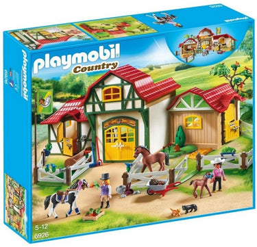 Op de PLAYMOBIL manege of paardrijclub valt veel te doen. De stallen moeten schoongemaakt en de paarden moeten verzorgd worden. Maar echte paardenfans vinden dat juist leuk. Eerst mogen de paarden uit de boxen naar de ruime weide. Vol energie springen ze rond. Na het schoonmaken van de paardenboxen gaat de amazone naar de grote zadelkamer en zoekt daar het juiste zadel en de juiste accessoires uit voor de rit die ze gaat maken. Het weer is perfect voor een langere tocht! Een droom voor alle paardenliefhebsters.