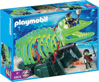 Betreed de mysterieuze wereld van de spookpiraten met de Playmobil Ghost Whale Skeleton set. Deze unieke set bevat een angstaanjagend walvisskelet dat oplicht in het donker, samen met twee spookpiraatfiguren. Het skelet is voorzien van een kanon, een zijwaartse klapdeur en een beweegbare schedel, wat zorgt voor realistisch en interactief speelplezier. Het oplichtende effect in het donker voegt een extra dimensie toe aan nachtelijke avonturen, waardoor deze set een spannende aanvulling is op elke Playmobil piratenverzameling.