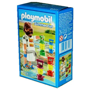 Playmobil 6311 Kampeer spel. Dit setje van Playmobil bevat een gezelschapsspel voor 4 personen. Het spel bestaat uit een Playmobil figuur “BBQ Chef”, een speelbord, een dobbelsteen en leuke accessoires. Dit spelletje van Playmobil is gebaseerd op het thema Playmobil Summer Fun.