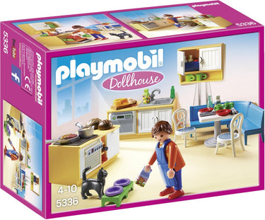 De Playmobil 5336 Keuken met Zithoek is een gedetailleerde speelset die perfect aansluit bij het Playmobil poppenhuis. Deze set bevat een uitgebreide keukeninrichting met een oven, gootsteen, afwasmachine en een uitschuifbare koelkast met drie flessenvakken. Er is servies en bestek voor vier personen, evenals diverse accessoires zoals pannen, potten en etenswaren. De set wordt geleverd met een speelfiguur en een huisdierkat, wat zorgt voor extra speelmogelijkheden. Met in totaal 84 onderdelen biedt deze set kinderen vanaf 4 jaar de mogelijkheid om hun creativiteit en rollenspelvaardigheden te ontwikkelen binnen een huiselijke omgeving.