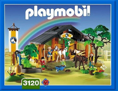 De Playmobil Paarden- en Ponyboerderij - 3120 is een uitgebreide set die kinderen meeneemt naar het leven op de boerderij. De set bevat een ruime stal met meerdere boxen, diverse paarden en pony's, en vier speelfiguren die de boerderij beheren. Accessoires zoals hekken, bomen en verzorgingsmaterialen voor de dieren zijn inbegrepen, wat bijdraagt aan een realistische speelervaring. Met deze set kunnen kinderen hun eigen boerderijavonturen creëren en leren over dierenverzorging. De Playmobil Paarden- en Ponyboerderij is een waardevolle aanvulling voor elke Playmobil-collectie en stimuleert fantasierijk en educatief spel.