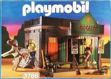 De Playmobil Sheriff's Office - 3786 is een klassieke set uit het Western-thema, uitgebracht in 1994 en geproduceerd tot 2003. Deze gedetailleerde set bevat het kantoor van de sheriff met een gevangeniscel, inclusief een deur met werkend slot en een afbreekbare muur voor ontsnappingsscènes. De set bevat twee figuren: een sheriff en een bandiet, evenals een paard en diverse accessoires zoals een bureau, stoelen, wapens en 'Wanted'-posters. Met deze set kunnen kinderen spannende avonturen in het Wilde Westen naspelen, waarbij ze de orde handhaven of juist proberen te ontsnappen uit de gevangenis. De Playmobil Sheriff's Office is een waardevolle aanvulling voor verzamelaars en een favoriet onder kinderen die houden van fantasierijk spel.