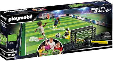 De Playmobil 71120 Voetbalstadion Bouwset brengt de spanning van het voetbal direct naar de speelkamer. Deze set bevat twee voetballers met een realistische schietfunctie, twee doelmannen, drie voetballen en diverse extra's voor urenlang speelplezier. Dankzij de schietfunctie kunnen zowel lage als hoge ballen nauwkeurig worden geplaatst, wat bijdraagt aan een authentieke spelervaring. Met de bijgeleverde stickervellen kunnen spelers hun favoriete rugnummers kiezen en aanpassen. Ideaal voor jonge voetbalfans die hun eigen wedstrijden willen creëren en naspelen. Geschikt voor kinderen vanaf 5 jaar.