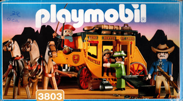 De Playmobil Western Express Postkoets - 3803 is een klassieke set uit het Western-thema van Playmobil, uitgebracht in 1995 en geproduceerd tot 2002. Deze gedetailleerde set bevat een authentieke postkoets met bagagerek, vier paarden en vier figuren: een koetsier, cowboy, western dame en een jongen. Accessoires zoals bagage, een emmer, een zwarte kluis en diverse wapens zijn inbegrepen, wat bijdraagt aan realistisch en fantasierijk speelplezier. De Western Express Postkoets is een waardevolle aanvulling voor verzamelaars en een favoriet onder kinderen die avonturen in het Wilde Westen willen naspelen.