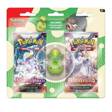 De Pokémon Back to School Eraser Blister – Smoliv combineert handig schoolmateriaal met het plezier van het Pokémon TCG-verzamelen. Deze set bevat een schattige gum in de vorm van Smoliv, perfect voor gebruik tijdens het tekenen of schrijven. Daarnaast krijg je twee Pokémon TCG-boosterpacks waarmee je jouw kaartencollectie kunt uitbreiden. Ideaal voor zowel verzamelaars als spelers, en een leuke manier om het nieuwe schooljaar te beginnen. Een echte aanwinst voor iedere Pokémon-fan!