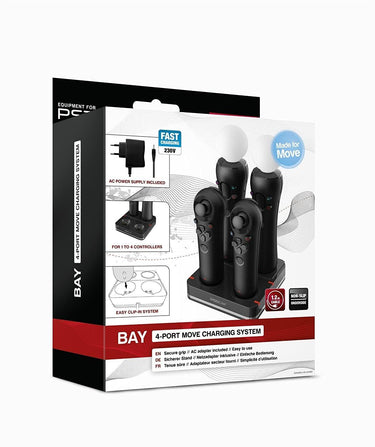 Met het compacte BAY 4-Port Move Charging System laadt u tot wel twee Motion- en twee Navigation-controllers voor PS3 Move gelijktijdig op. De polslussen kunnen daarbij aan de controllers blijven zitten. De bediening is erg eenvoudig: gewoon de controllers erop zetten en de laadprocedure begint, praktische LED′s informeren u voortdurend over de laadtoestand.