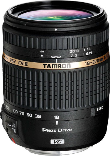De Tamron 18-270mm f/3.5-6.3 Di II PZD is een veelzijdige all-in-one zoomlens ontworpen voor Sony A-mount DSLR-camera's met APS-C-sensoren. Deze lens biedt een indrukwekkend zoombereik van 15x, wat overeenkomt met een brandpuntsafstand van ongeveer 27-405mm in 35mm-equivalent.