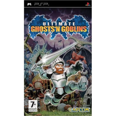 Ultimate Ghosts 'n Goblins voor de PlayStation Portable (PSP) is een uitdagende actieplatformer waarin je in de huid kruipt van ridder Arthur om prinses Prin Prin te redden uit de klauwen van demonische vijanden. Deze game, ontwikkeld door Capcom, combineert klassieke gameplay met moderne elementen zoals verbeterde graphics, meerdere moeilijkheidsgraden en RPG-achtige upgrades. In dit avontuur trotseer je donkere kerkers, spookachtige kastelen en bloeddorstige monsters terwijl je nieuwe wapens en magische krachten verzamelt. Ultimate Ghosts 'n Goblins behoudt de bekende moeilijkheidsgraad van de serie, maar biedt ook opties voor minder ervaren spelers. De game bevat talloze geheimen en verborgen voorwerpen die zorgen voor hoge herspeelbaarheid. Dankzij de unieke visuele stijl en vloeiende animaties is dit een van de meest geliefde platformgames op de PSP. Een must voor fans van klassieke actie en uitdagende gameplay.