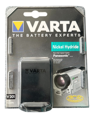 De VARTA V201 is een 4,8 V NiMH-accu (1800 mAh) voor oudere Panasonic camcorders uit de NV-reeksen. Compatibel met onder andere: MV-R10, MV-R2, NV-10E, NV-33, NV-800, NV-A1, NV-A1E, NV-A1EN, NV-A3, NV-A3A, NV-A3E, NV-A4, NV-A5, NV-A5A, NV-A5EN, NV-A7, NV-R10, NV-R100, NV-R100EN, NV-R10A, NV-R10E, NV-R11, NV-R11A, NV-R11B, NV-R11E, NV-R15, NV-R200, NV-R3, NV-R30, NV-R30A, NV-R33, NV-R330, NV-R330EN, NV-R33A, NV-R33B, NV-R33E, NV-R35, NV-R5, NV-R50, NV-R500, NV-R500EN, NV-R500EW, NV-R500MC, NV-R50A, NV-R50B, NV-R50E, NV-R55, NV-R550, NV-R550EN, NV-R55A, NV-R65E, NV-RX1, NV-RX10, NV-RX100, NV-RX101, NV-RX2A, NV-RX3, NV-RX30, NV-RX30EN, NV-RX33, NV-RX33A, NV-RX49, NV-RX5, NV-RX50, NV-RX501, NV-RX6, NV-RX600, NV-RX64, NV-RX66, NV-RX7, NV-RX70, NV-RX70EN, NV-RX7A, NV-RX7E, NV-RX9, NV-S10, NV-S100, NV-S200, NV-S58, NV-S600, NV-S65, NV-S65E, NV-S70, NV-S77, NV-S77A, NV-S85, NV-S850, NV-S850EN, NV-S85A, NV-S85EG, NV-S88, NV-S880, NV-S88EG, NV-S90, NV-S900, NV-S904, NV-S950, NV-S950PN, NV-S99, NV-S99E, NV-SX3, NV-SX30, NV-SX39, NV-SX50, NV-SX50EN, NV-VX1, NV-VX10, NV-VX10A, NV-VX10EN, NV-VX1A, NV-VX20, NV-VX21, NV-VX22, NV-VX22A, NV-VX22EN, NV-VX22ENH, NV-VX30, NV-VX30EN, NV-VX31, NV-VX33, NV-VX33EG, NV-VX33EN, NV-VX33ENH, NV-VX43, NV-VX5, NV-VX51, NV-VX55, NV-VX55A, NV-VX55EG, NV-VX55EN, NV-VX55ENH, NV-VX70, NV-VX70A, NV-VX70EN, NV-VX77, NV-VX77A, NV-VX77ENH, NV-VX7A, NV-VX9, NV-X100.