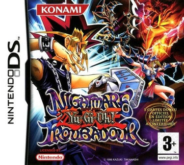 Betreed de wereld van duistere intriges en spannende kaartgevechten met Yu-Gi-Oh! Nightmare Troubadour. Als een veelbelovende duelist verken je deze meeslepende game waarin je jouw deck aanpast, strategieën ontwikkelt en duelleert tegen legendarische personages. Gebruik het touchscreen van de Nintendo DS om kaarten te beheren en uitdagende puzzels op te lossen terwijl je je een weg baant door een meeslepend verhaal vol mysterie en actie. Met honderden kaarten om uit te kiezen en aanpasbare decks, biedt Nightmare Troubadour een diepgaande ervaring voor zowel Yu-Gi-Oh! fans als nieuwkomers in het kaartspelgenre.